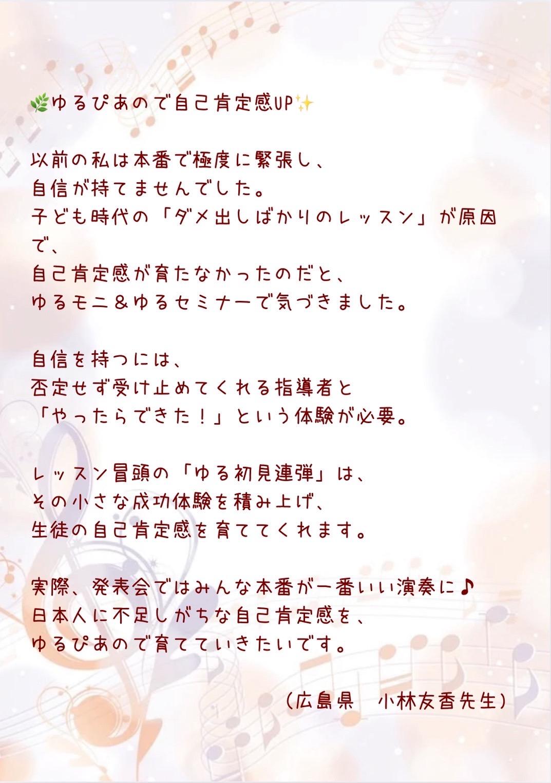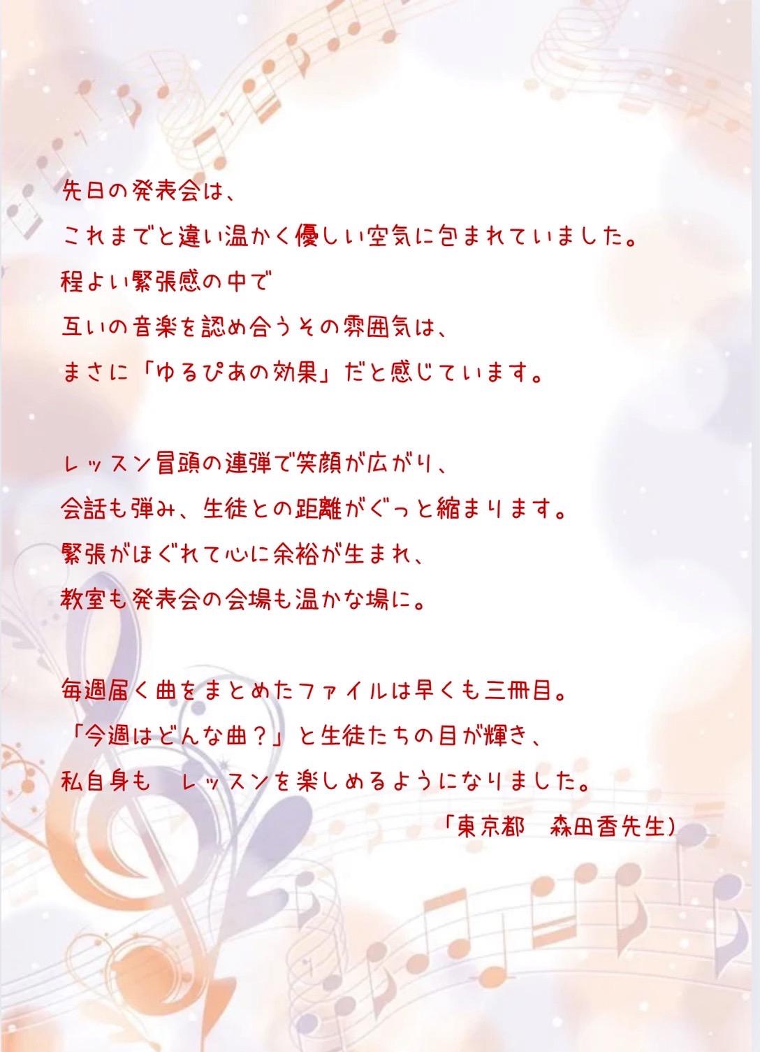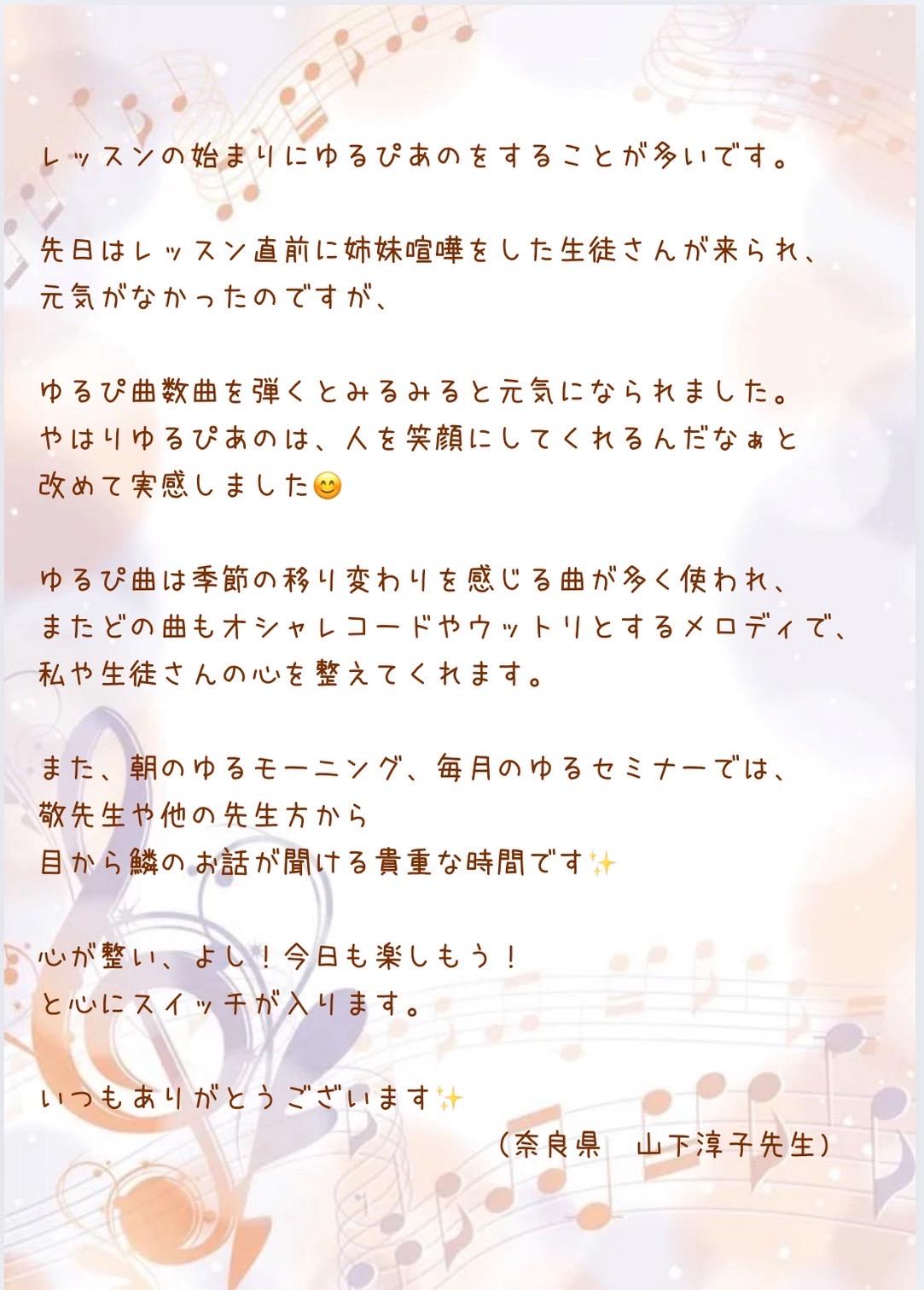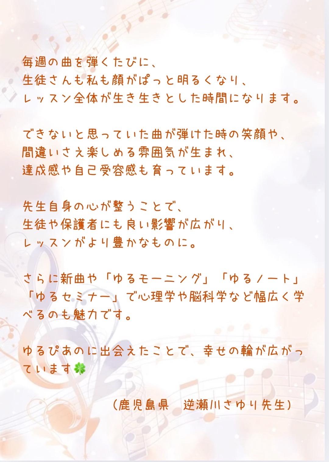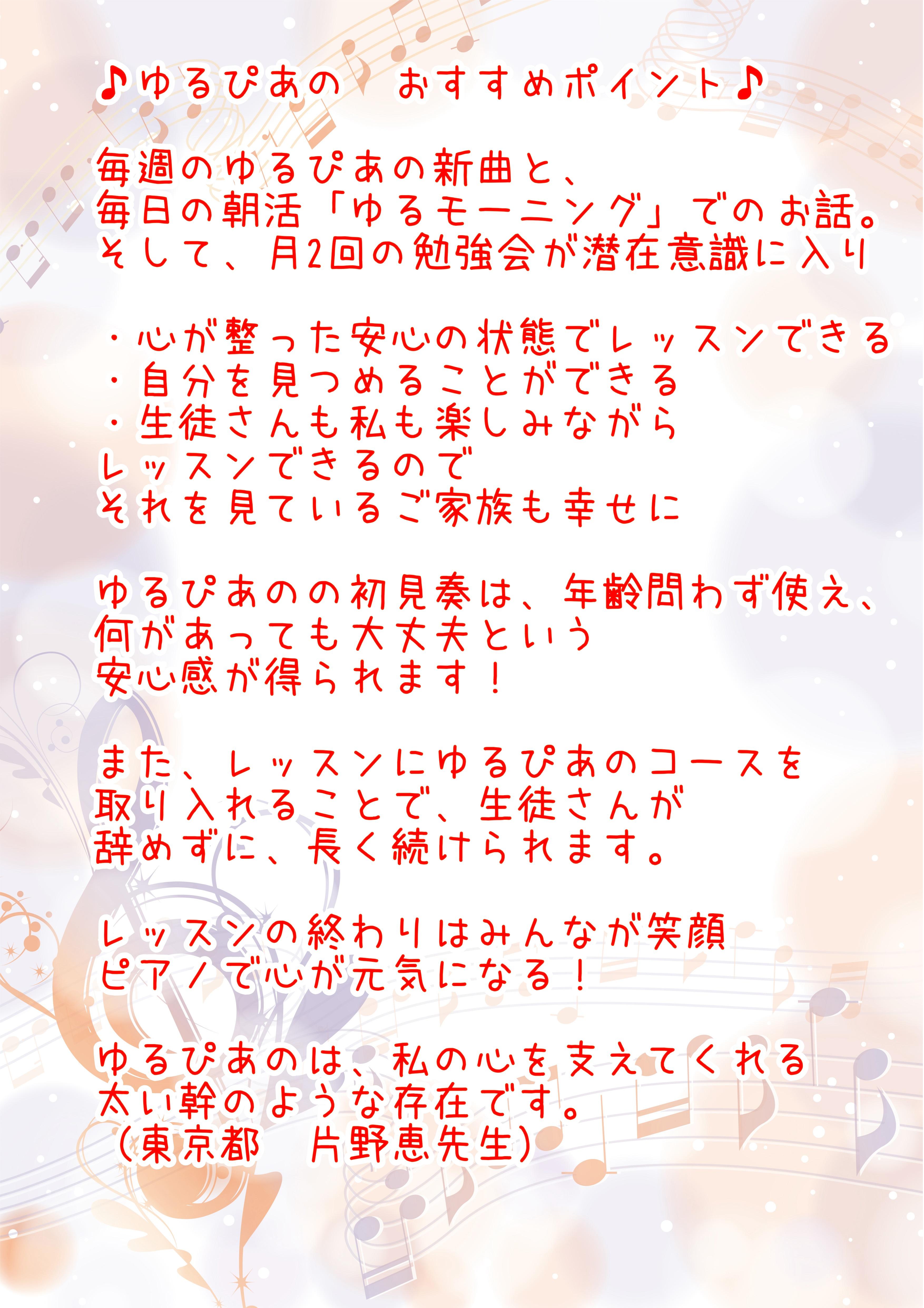 今までのメソッドを変えなくても、たった数分、ゆるぴあのを取り入れるだけで、レッスン全体が輝きを増します。